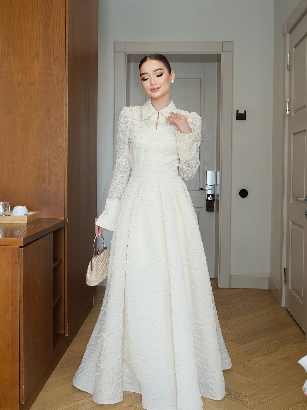 Robe de soirée ivoire élégante en dentelle – CLAUDIA Eligancia